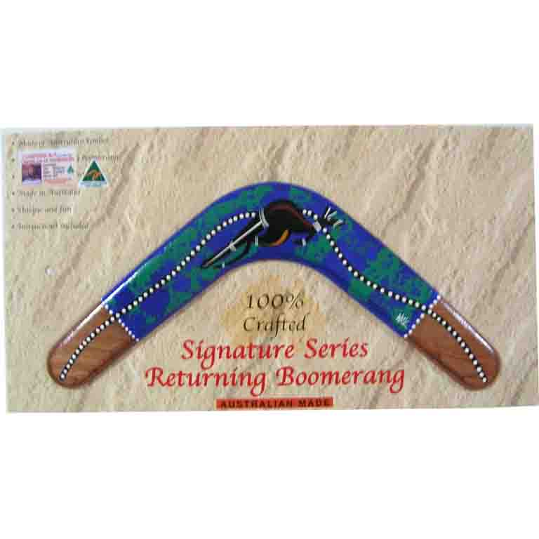 A boomerang is a thrown tool, typically constructed as a flat airfoil, that is designed to spin about an axis perpendicular to the direction of its flight. A returning boomerang is designed to return to the thrower. It is well known as a weapon used by Indigenous Australians for hunting.