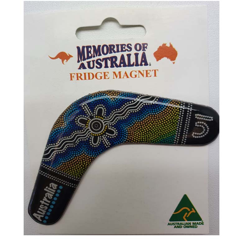 Boomerang Dot Art Blue Australian Made Resin Magnet