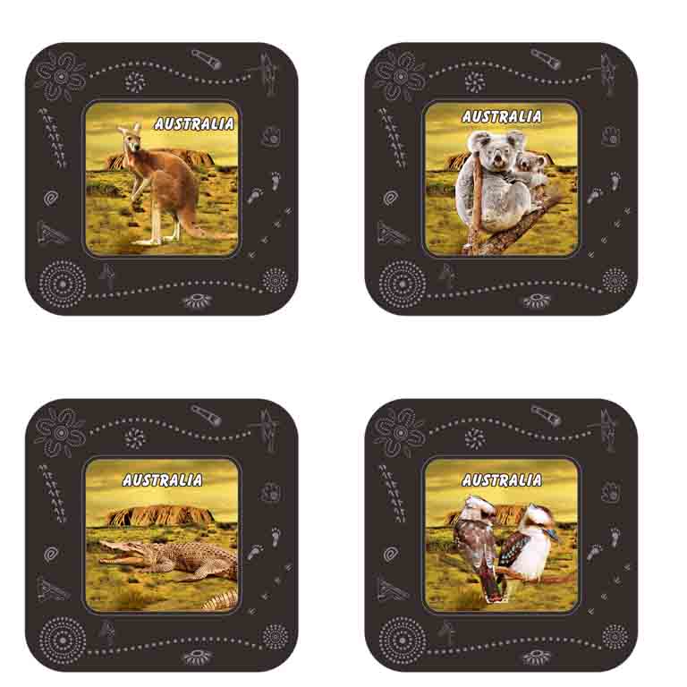 Coaster 4pc Square Black Animals