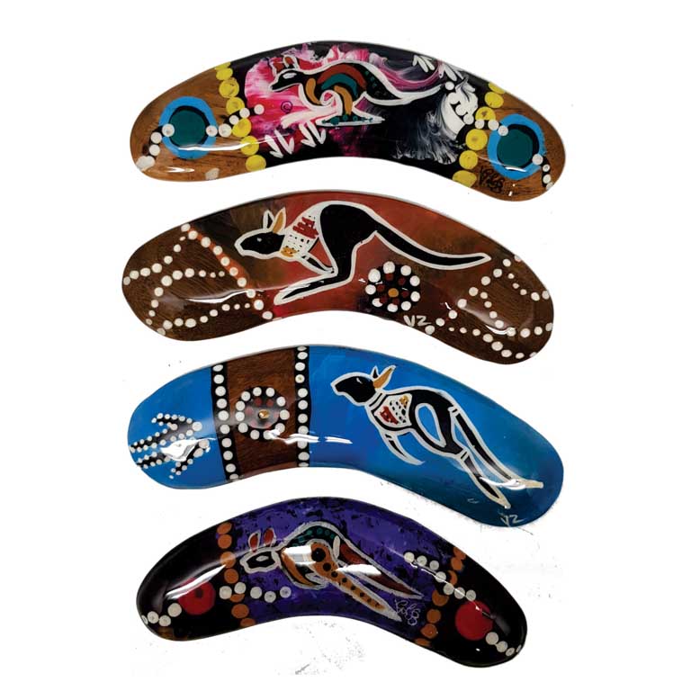 Our Boomerangs are individually handpainted by our team of talented Indigenous Artists. Stickers of Authenticity are provided.