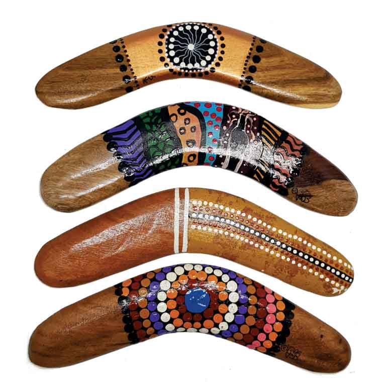 Our Boomerangs are individually handpainted by our team of talented Indigenous Artists. Stickers of Authenticity are provided.