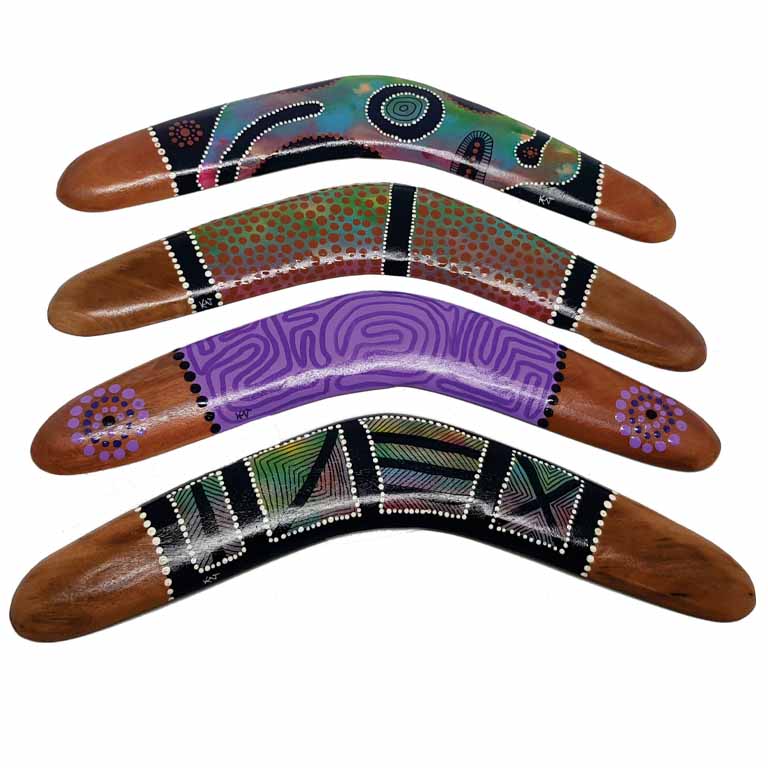 Our Boomerangs are individually handpainted by our team of talented Indigenous Artists. Stickers of Authenticity are provided.