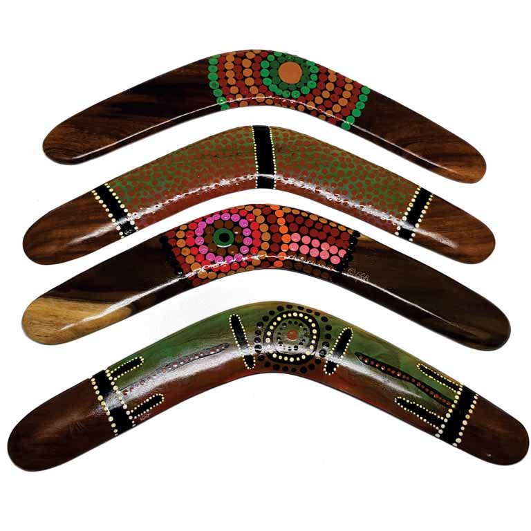 Our Boomerangs are individually handpainted by our team of talented Indigenous Artists. Stickers of Authenticity are provided.