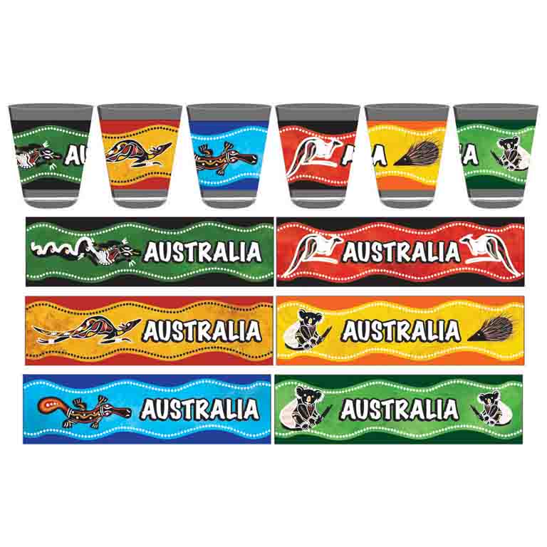 Shot Glass Aboriginal Design x 6